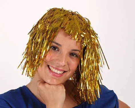 Perruque disco brillante or