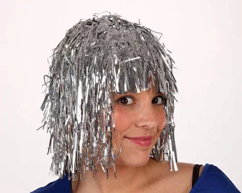 Perruque disco brillante argent