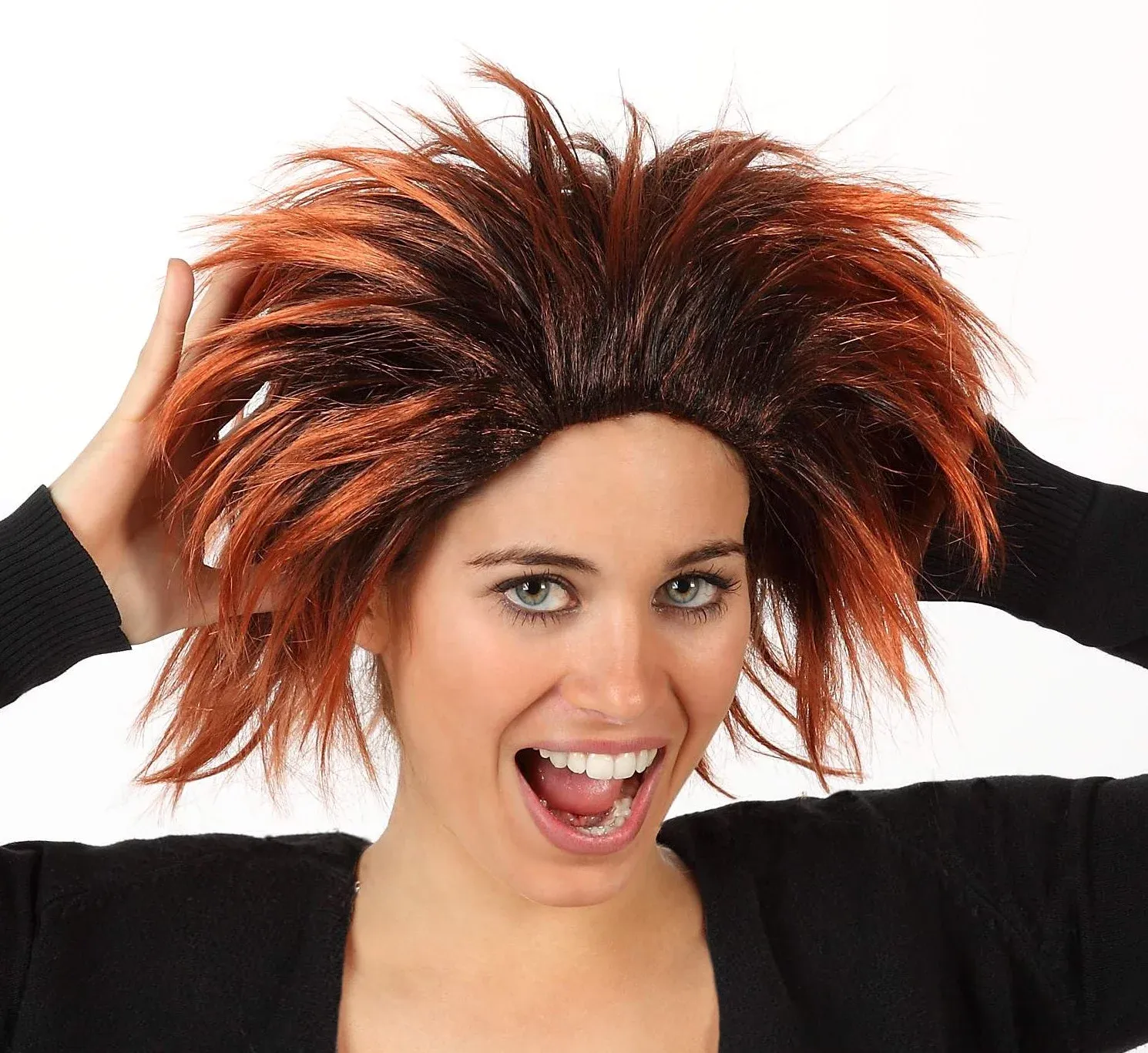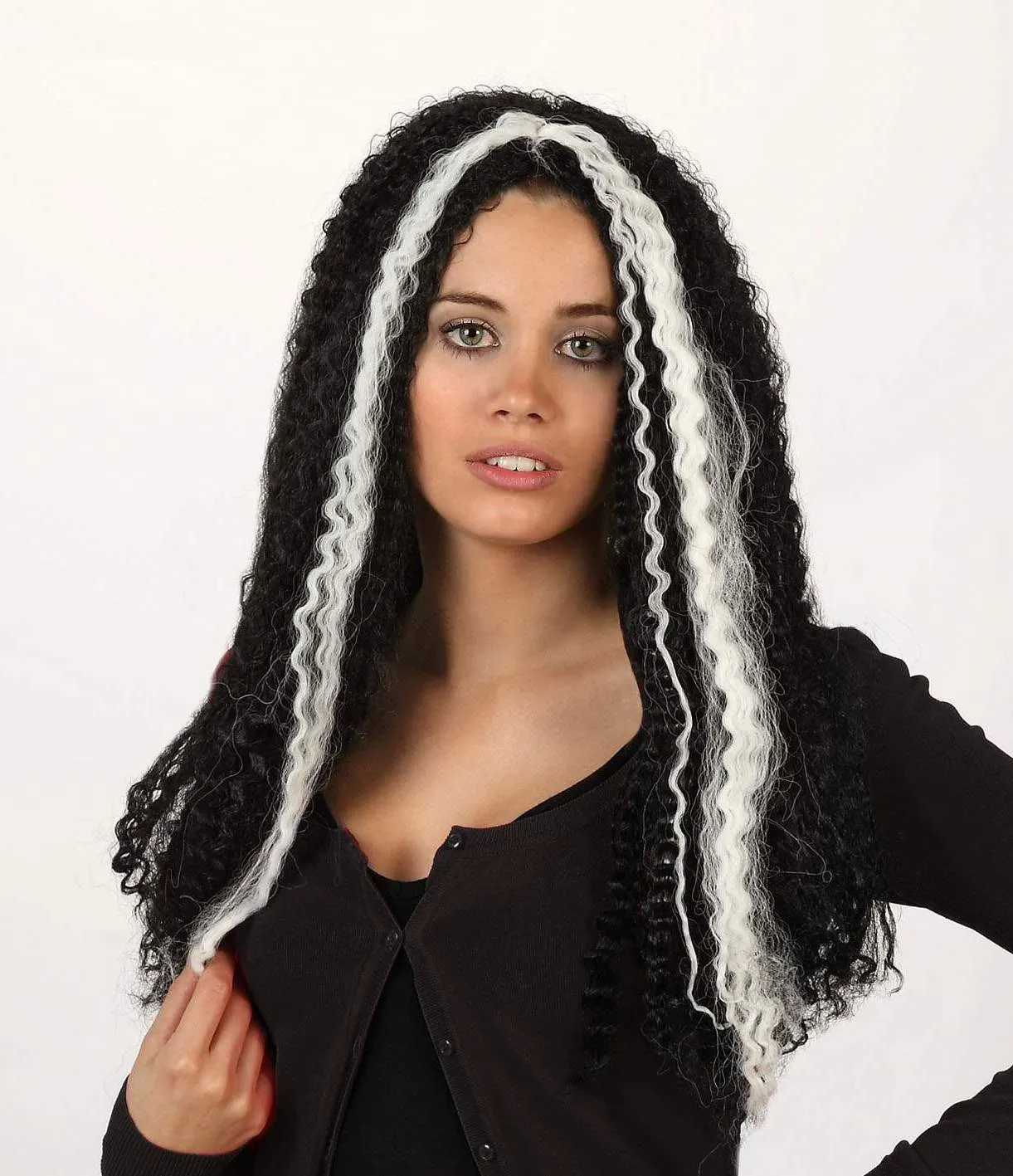 Perruque frisée noir mèches blanches