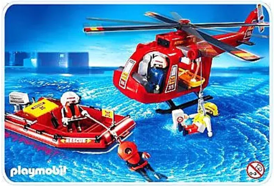 Playmobil Sauveteurs hélicoptère bateau pneumatique 4428 (boîte abîmée)
