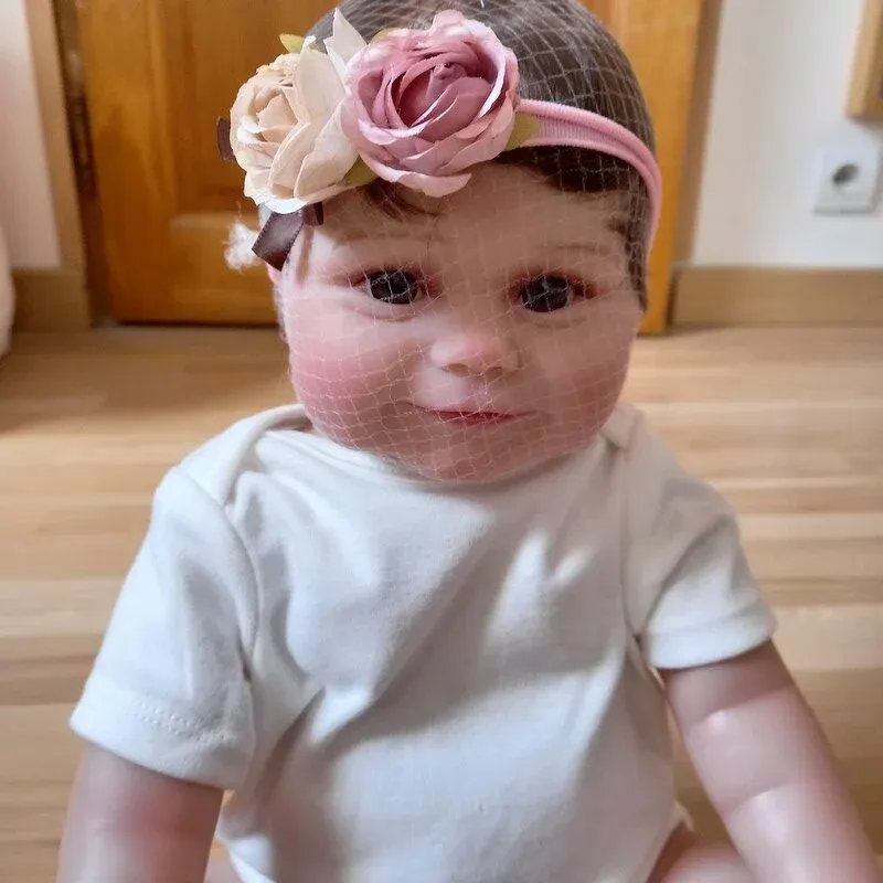 poupée reborn girl fille neuf  avec filet protection visage, et yeux ouverts