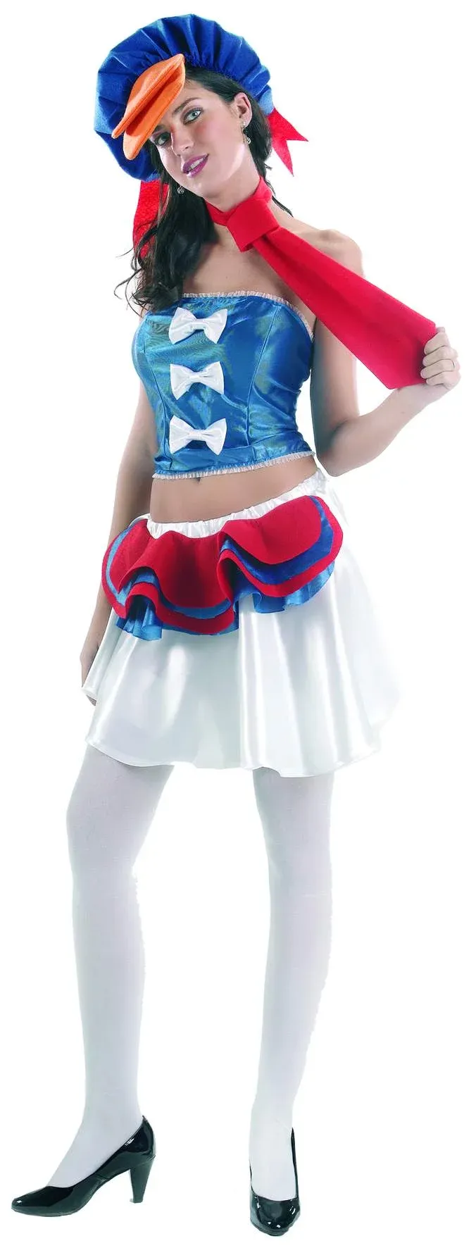 bustier, jupe, cravate et chapeau