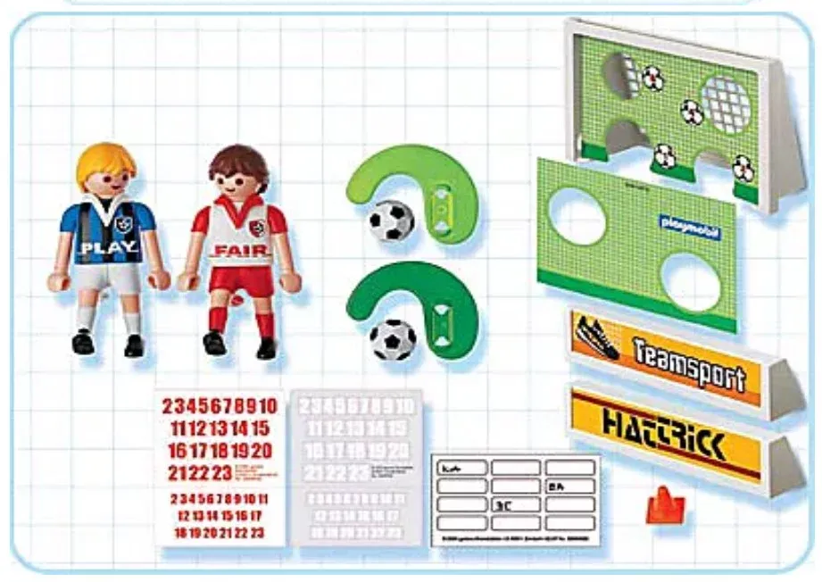 2 joueurs de foot munis d’une jambe de tir mobile. Contient 2 cibles de tir interchangeables.