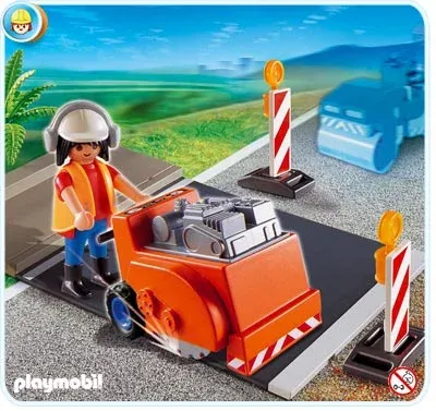 Train radiocommandé avec conducteur, technicien, wagon et grand circuit.